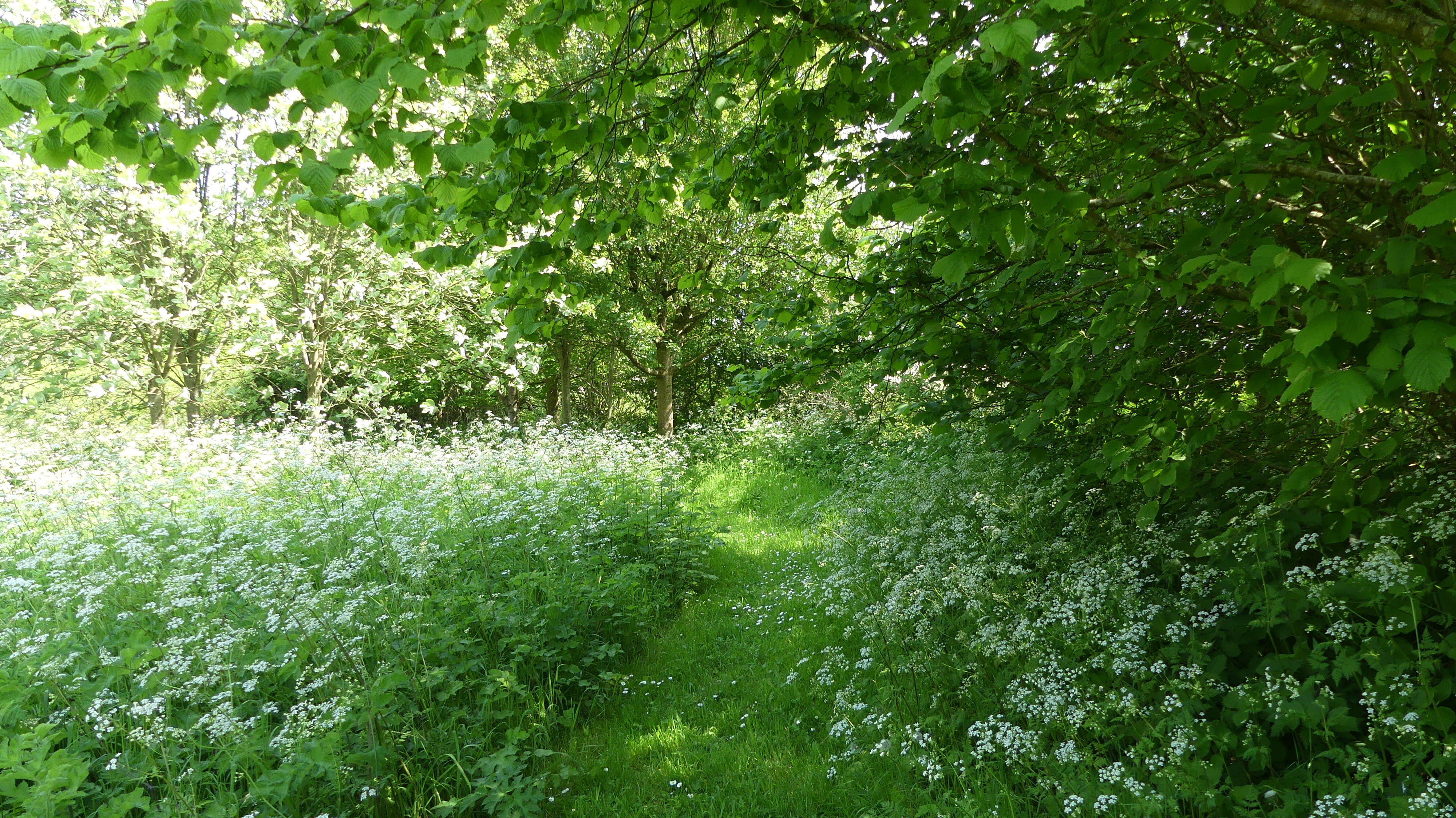Cow Parsley (Anthriscus sylvestris) is at its very best right now in mid May at Charlton Down Nature Area. Whichever way you look there is a frothy sea of white nodding flowers contrasting with the fresh bright colours of new foliage on the trees. It is absolutely fabulous to walk along the narrow pathways that wind around the site, in an out of the shade of overhanging field maple, whitebeam, hazel, and cherry trees, with the cow parsley shoulder-high on each side.