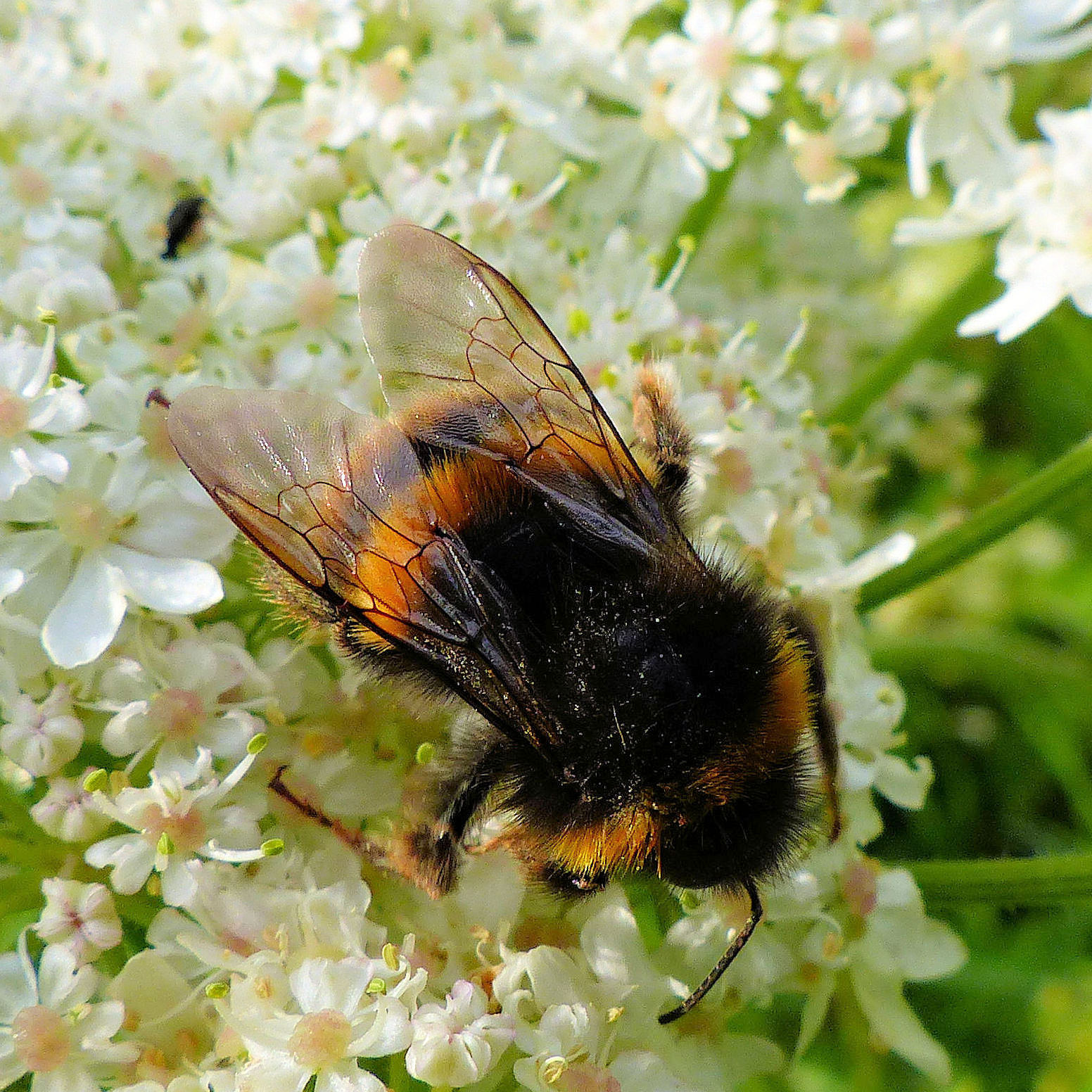 The Buff-tailed Bumblebee (Bombus terrestris) is one of 26 species of bees and wasps that have been recorded in Charlton Down Nature Area so far, and that is probably the tip of the iceberg, as they say, because there are very many species of Hymenoptera. Most bees and wasps are relatively small, or quick, and very tricky to identify without capturing them first to examine and photograph before releasing. There are 25 species of Bumblebee in the UK. The bumblebees are larger than most other types of bees and wasps so there is a better chance of getting an accurate identification. It is still a problem to accurately distinguish between the Buff-tailed and the White-tailed Bumblebees. All the identifications here are tentative and subject to revision should an expert decide there has been an error.