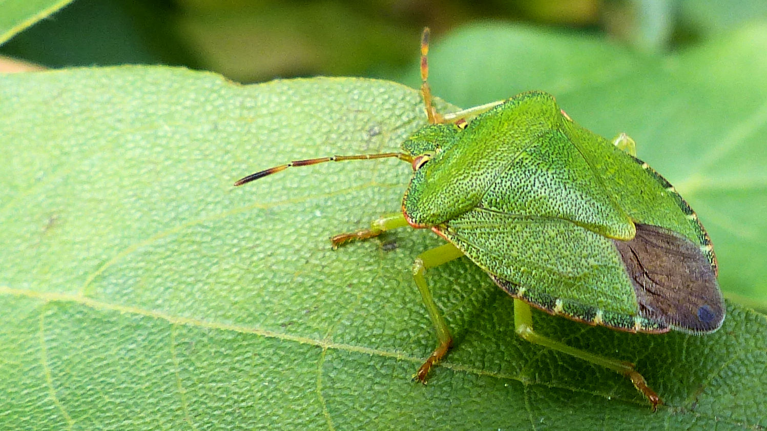The Green Shieldbug (Palomena prasina) is a true bug (Hemiptera, Heteroptera). It is one of 7 shieldbug species found at Charlton Down Nature Area to date.