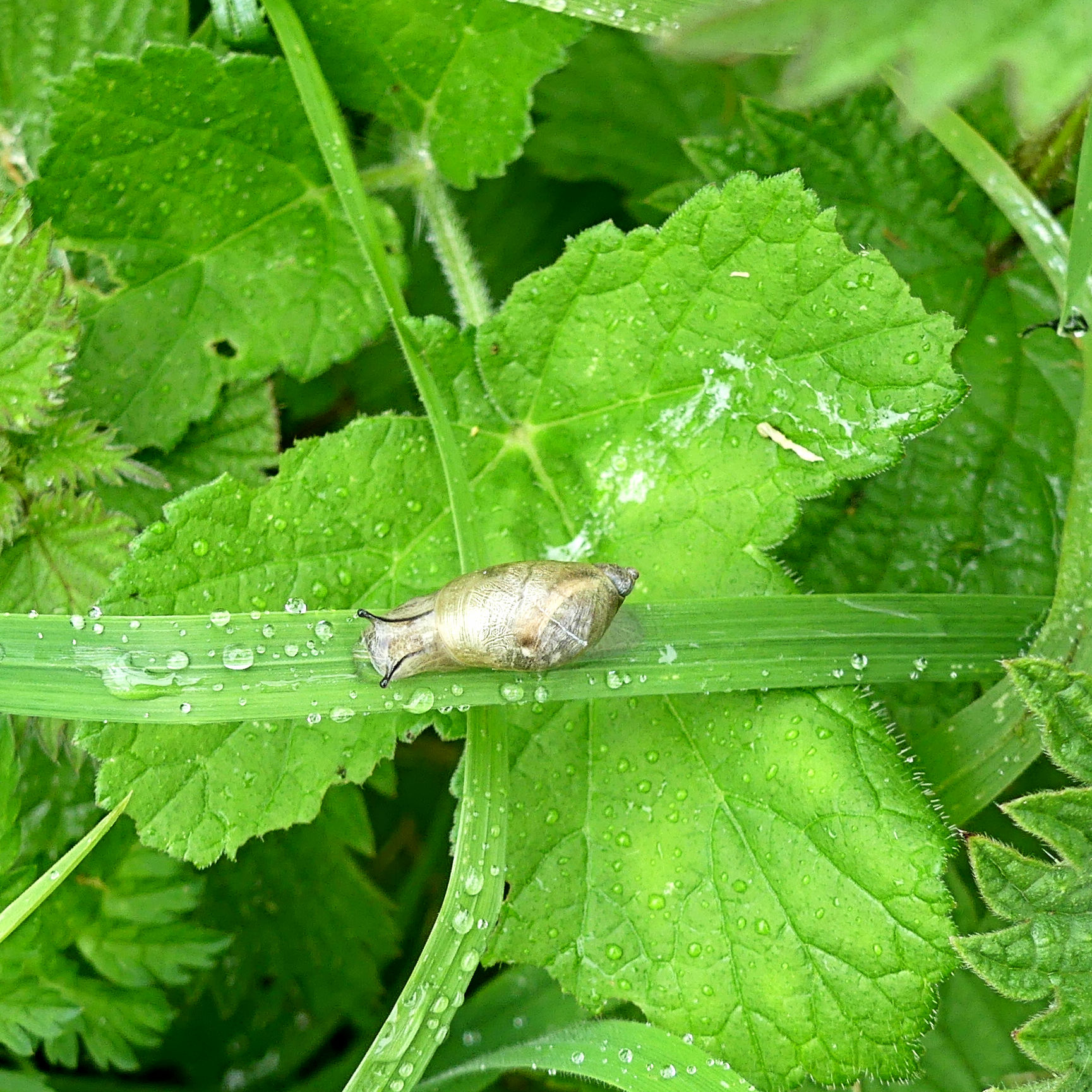 The Amber Snail (Succinea putris) has an uncommon elongate oval shape with a thin translucent shell through which you can see all the body parts. The fleshy foot, head, and tentacles are almost transparent too. It is very common in the Charlton Down Nature Area and is one of 12 species of Mollusca that have been already been identified from the site. There are probably many more species to find but distinguishing the different species is quite difficult.