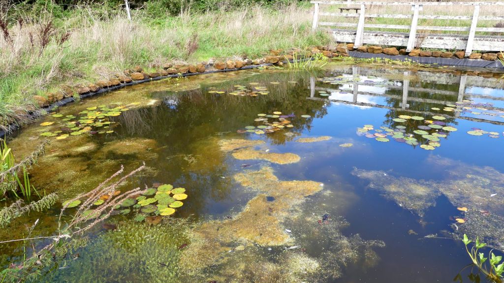 The summer of 2025 was a particularly long hot and dry one in Charlton Down. In fact, The Meteorological Office has declared that last summer was the hottest and driest on record in the UK. This weather naturally had an impact on the Nature Area in the village. Our pond relies on rainfall and there was very little of it. The water level dropped dramatically by evaporation due to the high temperatures. The heat, shallow water, and endless sunshine promoted the growth of filamentous algae in great clumps that threatened to deoxygenate the water, and also gave a growth spurt to the accidentally introduced alien New Zealand Pygmy Weed (Crassula helmsii) doubling its coverage and threatening to outcompete and strangle the other native water plants.