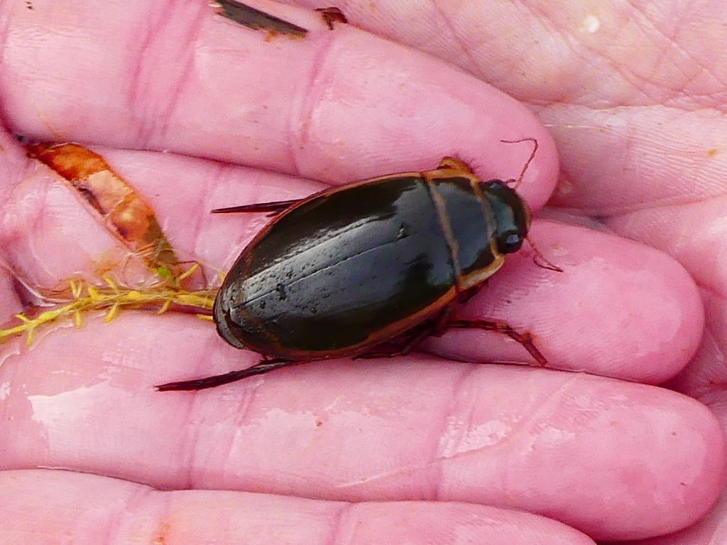 We found a number of very small aquatic invertebrates including snails and freshwater shrimps in the plants. This was very heartening as an indication that a recovery process was taking place in the pond after the incident earlier in the year. Previously, for example, the Lymnaeid and Planorbid snails – once numerous – had seemed to completely disappear. But here was evidence of a new generation developing. We were also lucky enough to see a beautiful Great Diving Beetle.